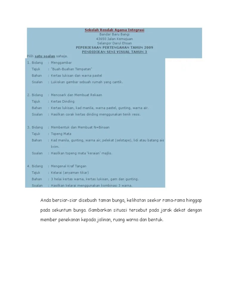 2) salah seekor hinggap pada tumbuhan berbunga. Soalan dan markah pada kertas lukisan sudut atas . Untuk itu senang jer.bawalah siling 20sen atau jangka lukis kalau nak nampak pro skit laa . Lukisan sudut atas sebelah kanan bahagian belakang. Laut tenang bagai dalam lukisan dalam malam dalam kelam bagai diam Lukisan sudut atas sebelah kanan.